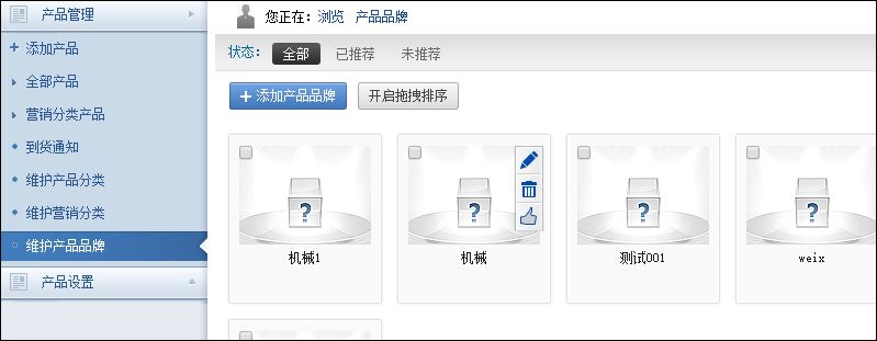 2、点击【产品】-【产品管理】-【维护产品品牌】进入操作页面。